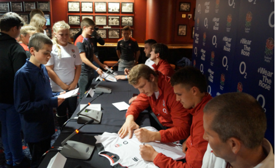The match was thoroughly entertaining, albeit possibly only for the England fans as they secured a massive 73-12 victory. The day didn’t end for the children at final whistle as they were invited to the press conference where they met England players, Lee Dickson, Joe Launchbury, Henry Slade and Kieran Brookes and the England Manager Stuart Lancaster. They were given the opportunity to ask questions of the players, to get photographs with each of them and their autographs.